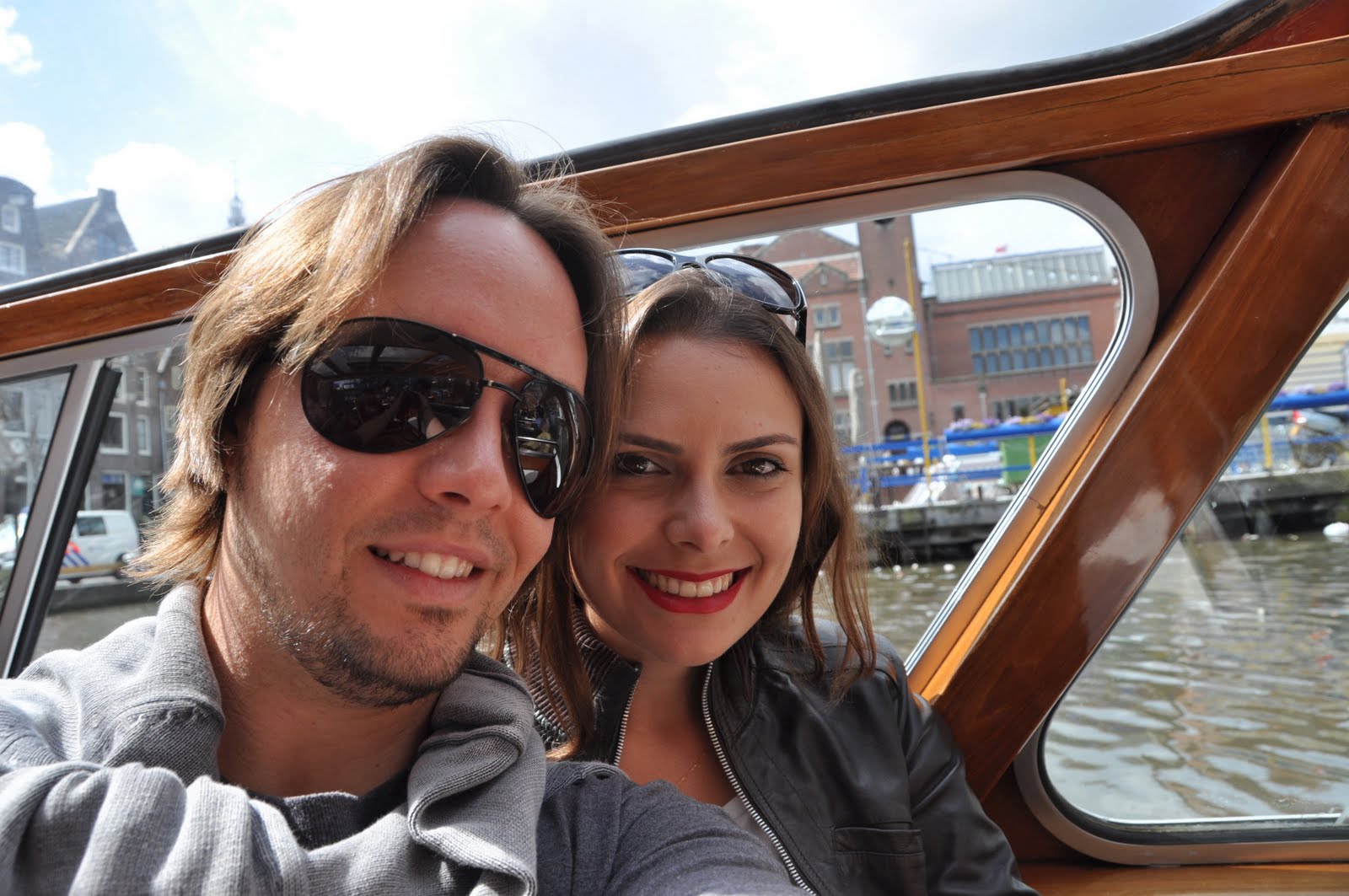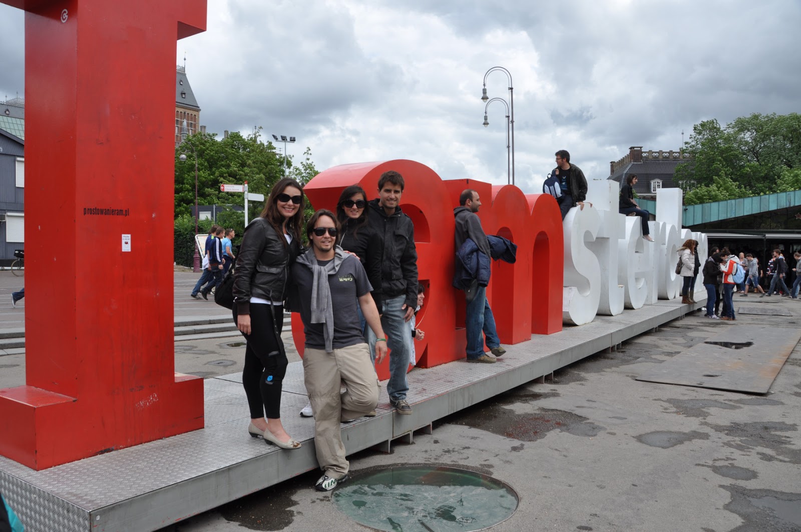 Depois de deixar a bagagem e o carro no hotel, tratamos de partir pro centro de Amsterdam e aproveitar que o sol deu o ar de sua graça aquele dia, isso porque a cidade não é conhecida por seus dias de sol e sim pela chuva que cai quase 300 dias por ano. O hotel disponibiliza um serviço de ônibus até o aeroporto, de onde seguimos de trem até o centro.