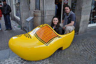 Foi por causa do joelho em frangalhos que não alugamos a bicicleta pra passear pela cidade, porque as magrelas holandesas, ao contrário das que estamos habituados, não tem o freio no guidon, e eu poderia provocar uma tragédia de proporções catastróficas caso não raciocinasse em tempo recorde que pra frear tem que pedalar pra trás. Parece débil, deve ser débil, mas eu não estava disposta a arriscar perder meu joelho no caso de uma freada brusca que me obrigasse a saltar da magrela e por os pés no chão pra parar (depois que a gente se estraga uma vez, pensa em milhões de maneiras de evitar se estragar de novo, e aí começamos a pensar em tragédias de todas as espécies). Além disso, imaginem que em uma cidade com cerca de 750 mil habitantes existem 600 mil bicicletas. Os números são intimidadores, os holandeses saem das barrigas das mães e já sabem pedalar antes mesmo andar, tenho certeza.