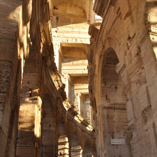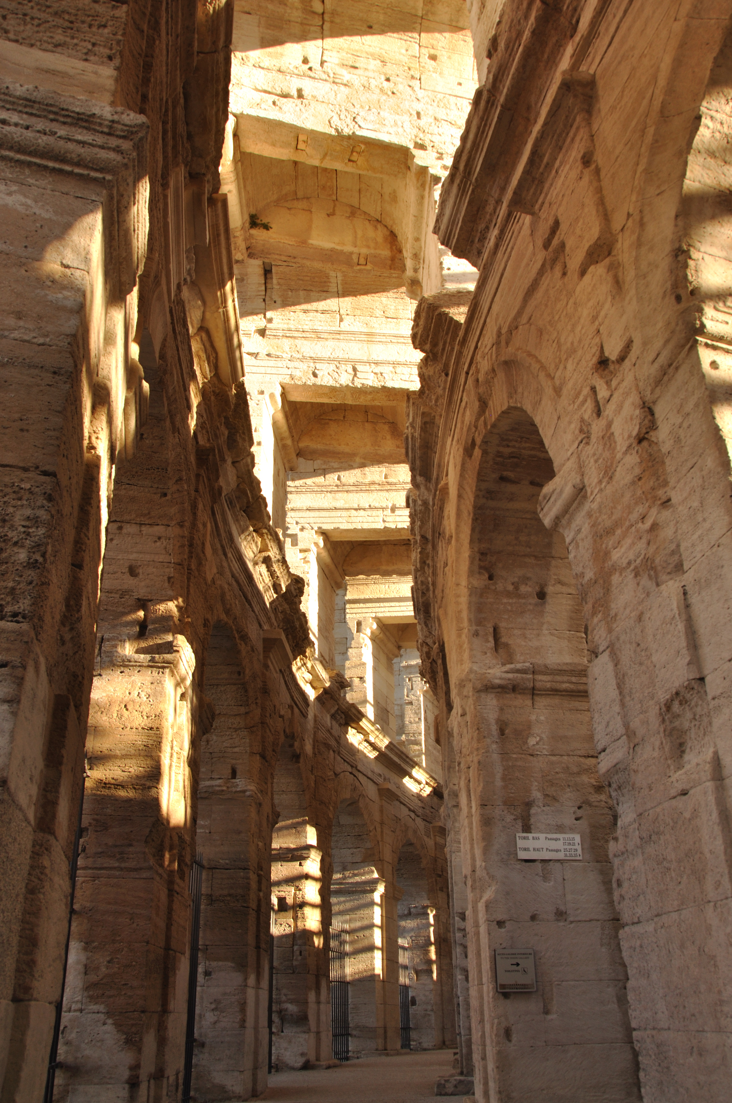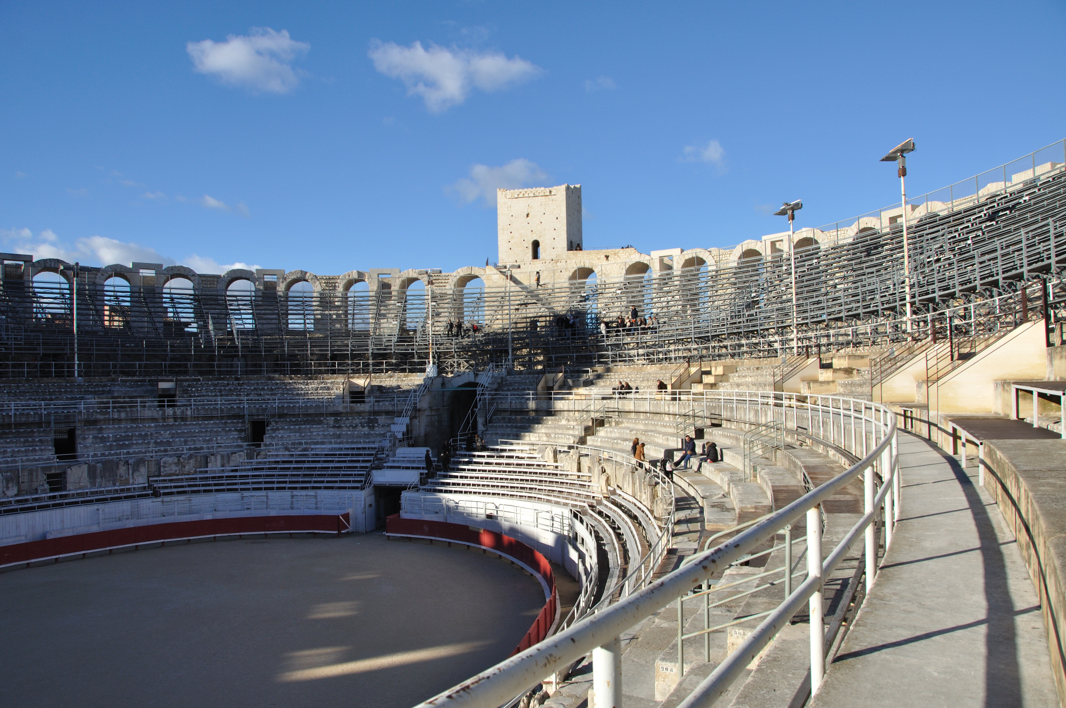 Essa localização geográfica da cidade entre a Espanha e a Itália, além da navegabilidade do Ródano fizeram de Arles um ponto estratégico durante o império romano. Em pouco tempo é possível visitar seu centro histórico, com o Anfiteatro romano no estilo do Coliseu, também conhecido como Arenas por serem palco das controversas “corridas” – o sul da França, principalmente Nîmes, Saintes-Maries-de-la-Mer e Arles mantêm a tradição de corridas de touro – e logo ao lado fica o Teatro Antigo.
