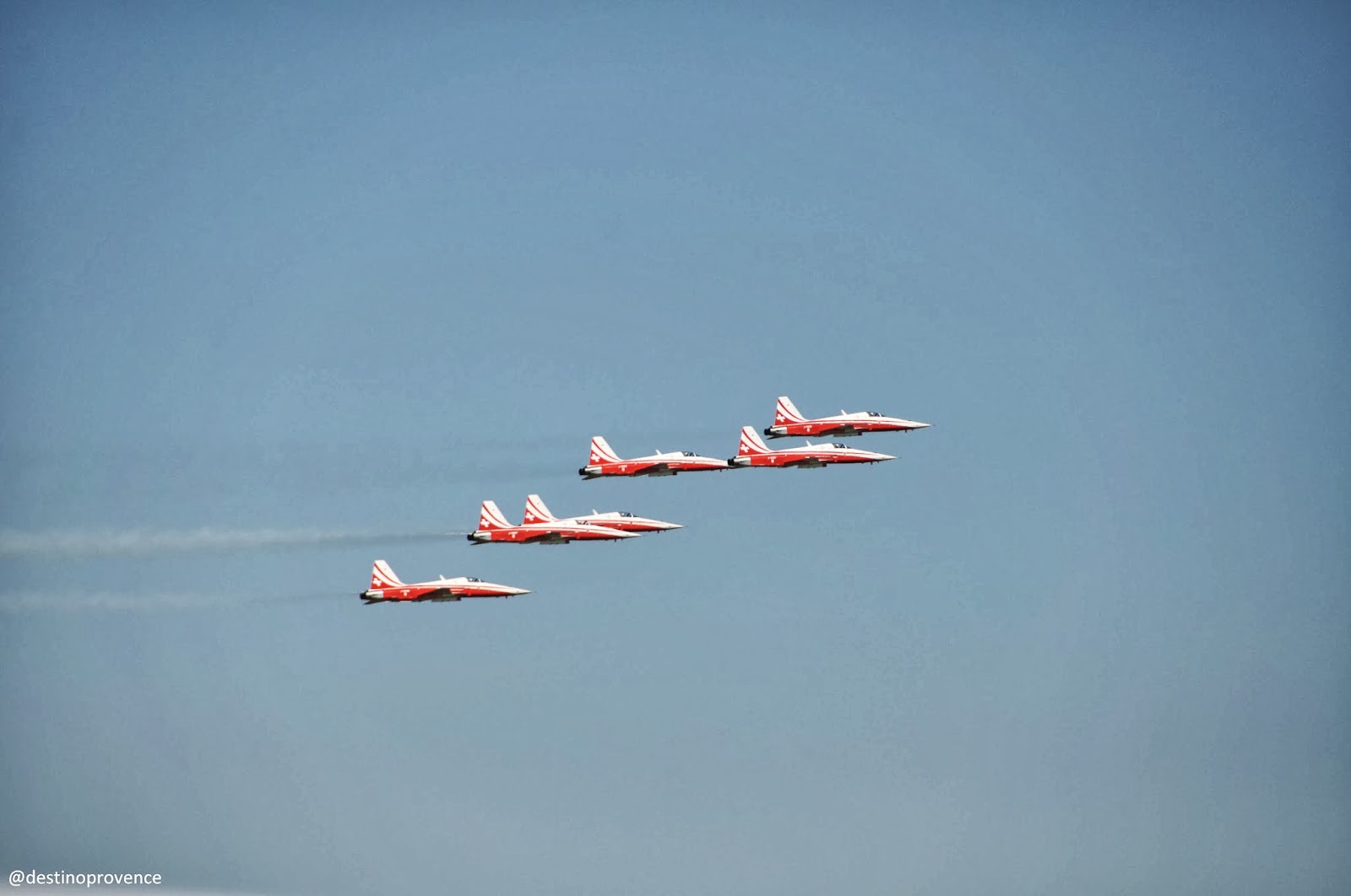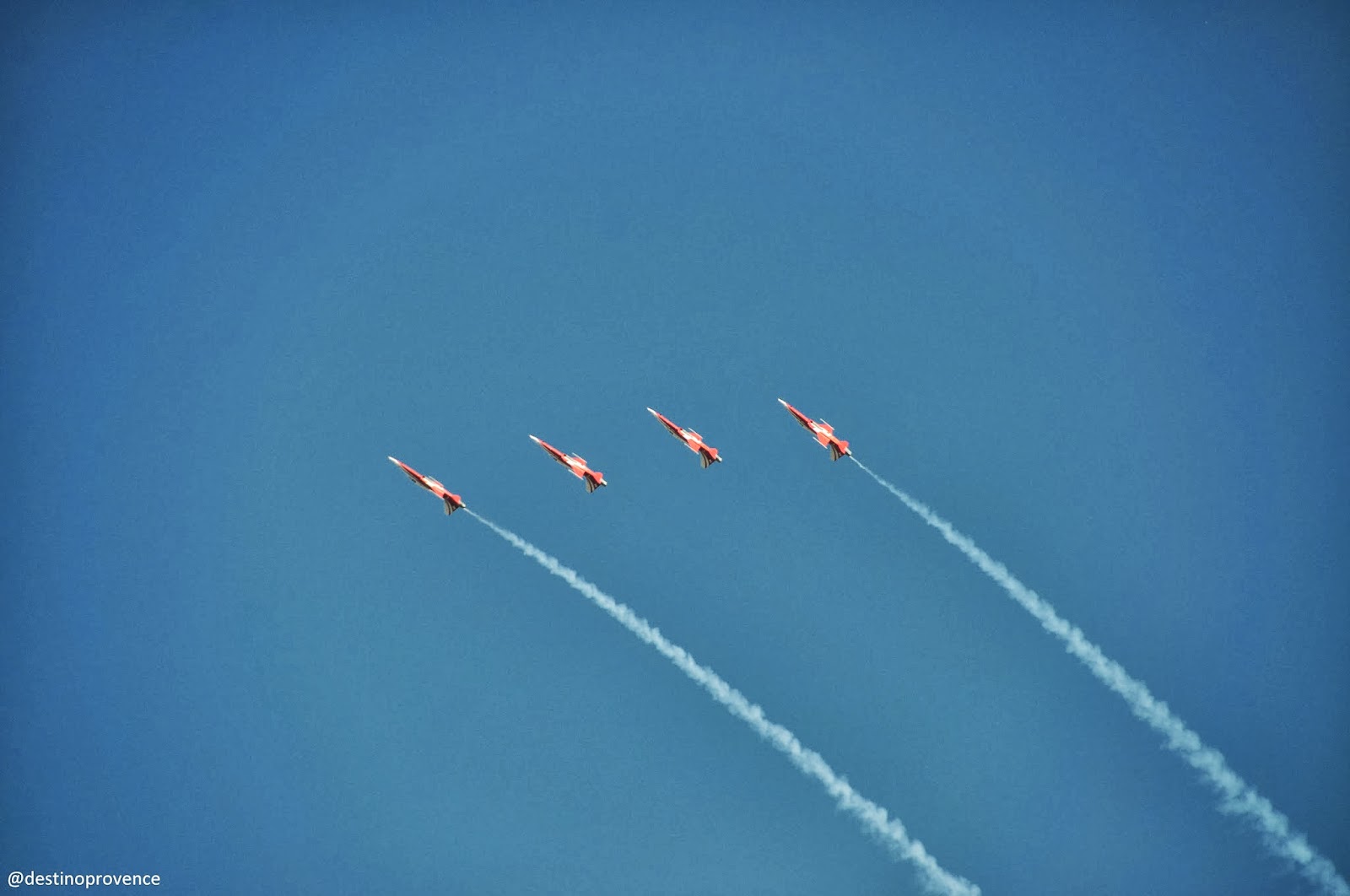 Em maio, foi organizada uma grande festa para comemorar os 60 anos de atividades da Patrouille, com a presença de outras esquadrilhas europeias : belgas, italianos, suíços, ingleses e espanhois estiveram presentes, colorindo os céus da Provença e garantindo uma comemoração espetacular, durante dois dias, sendo que o primeiro era exclusivo para convidados, mas foi transmitido pela tv. O mais legal da transmissão foram os bastidores, o momento em que os pilotos se preparam antes de entrarem em seus aviões para realizar as manobras. Numa sala, encontram-se os 9 pilotos sentados. De repente, eles começam a ensaiar todos os movimentos que serão feitos nos aviões, usando apenas as mãos. De olhos fechados, e com uma sincronia impressionante, digna dos melhores balés. A cada ordem do líder, uma manobra é realizada. Depois de terminado o ensaio, os pilotos ganham suas aeronaves, e o show continua. No dia seguinte, fomos assistir ao vivo, na base aérea, a apresentação da Patrouille de France e das demais esquadrilhas, e foi um evento incrível, que registramos em fotos e vídeos.