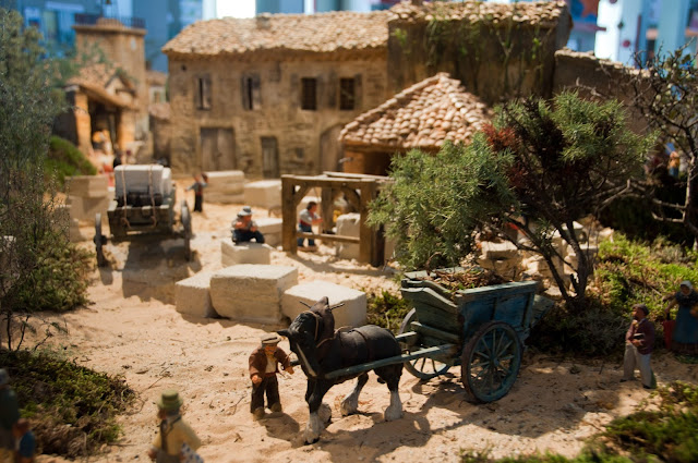 A primeira parada foi no Office du Tourisme pra conhecer o presépio provençal instalado no hall do edifício. Quando me deparei com o presépio, me emocionei, tamanha beleza, riqueza de detalhes e fineza no trabalho dos artesãos envolvidos na concepção e realização da obra. A diretora do Office me explicou que todos os anos o presépio é feito sob encomenda do órgão do turismo aos artistas, que escolhem um tema pra representar – o desse ano foi a pedra e os trabalhos relacionados à ela – e eles tem total liberdade no processo de criação.