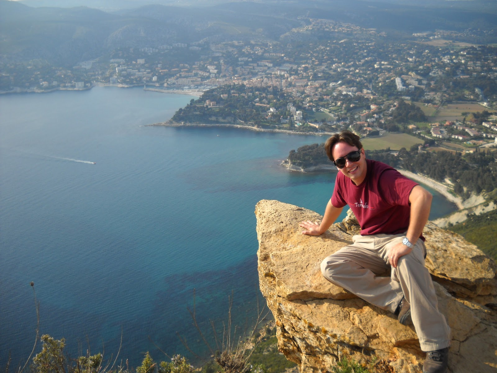 Partimos dali em direção à estrada sinuosa que conduz ao topo dos calanques, e nossa primeira parada foi em um ponto com uma bela vista da cidade e do mar. A próxima parada seria um pouco mais acima, e a vista era um pouco mais impressionante, com direito à chegar perto do precipício pra tirar fotos, mas claro que medrosa que sou não consegui chegar tão perto quanto Bernardo chegou, menino corajoso!