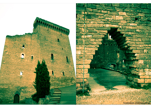 Depois da primeira parada fomos até o castelo, construído no século XIV, onde os papas costumavam passar algumas temporadas, mas mesmo antes de sua construção os pontífices mostravam gostar da cidade, ao redor da qual foram plantadas as primeiras vinícolas que produziam o vinho preferido de alguns deles. Data desta época do papado o nome de Châteauneuf-du-Pape, até então a cidade tinha o nome de Castro Novo, (castro significa cidade fortificada) mas acabou sendo traduzido como Châteauneuf (castelo novo), denominação que remonta ao século XI e por volta do século XIII o nome passou à Châteauneuf Calcernier em referência às explorações de calcário feitas na região. O nome Châteauneuf-du-Pape foi adotado oficialmente no século XIX e faz referência à época em que os papas habitavam Avignon e à influência que eles exerceram na região.