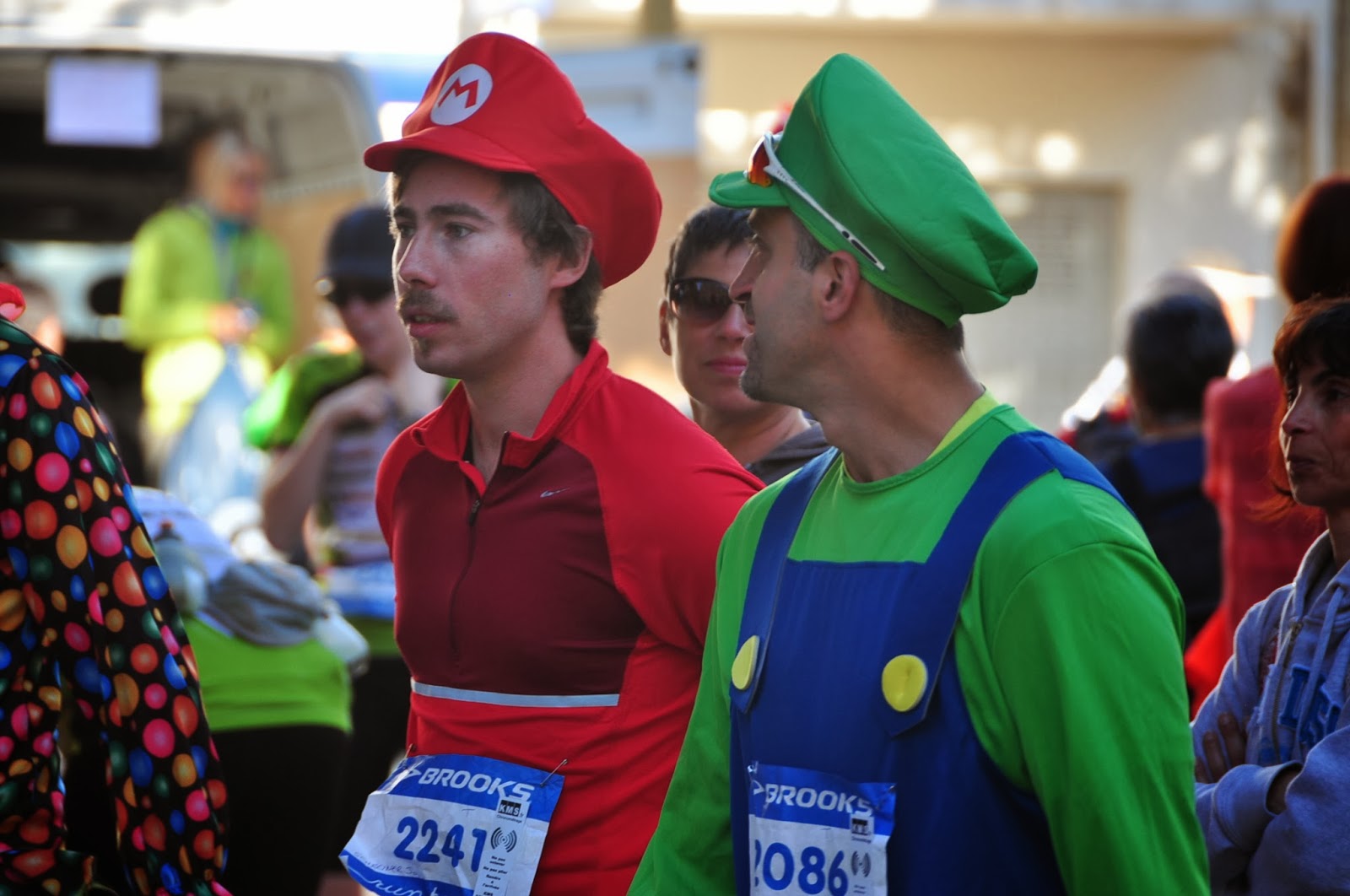 6- Participar do concurso de corredor fantasiado. Mais um item que fica pro ano que vem, porque não tive tempo hábil nem criatividade suficiente pra pensar numa fantasia. Mas tinha de tudo: trio de Elvis com peruca inflável, o duo Mario e Luigi, camponeses, uma verdadeira parada quase carnavalesca. Porque convivialidade é a palavra de ordem do evento.