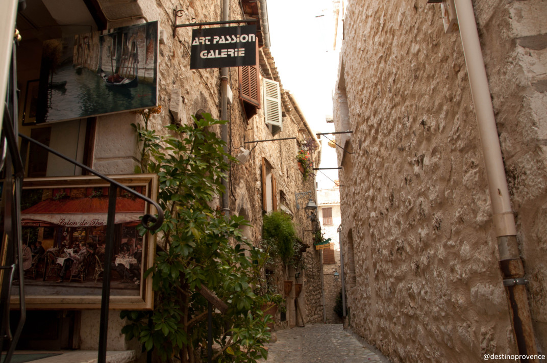 Depois de aproveitar o início da manhã na capital da Côte d’Azur, seguimos ao nosso último destino, a cidade de Saint-Paul-de-Vence, localizada a 19km dali. O trânsito de veículos também é restrito no interior do vilarejo, e um grande estacionamento pago se encontra não muito longe do centro antigo. Ao contrário das cidadezinhas visitadas anteriormente, Saint-Paul-de-Vence tinha uma grande quantidade de turistas estrangeiros, atraídos talvez pelo número considerável de galerias de arte espalhadas pela cidade, que ostenta um charme medieval no estilo dos edifícios, misturado ao ar provençal conferido pelas flores cuidadosamente dispostas nas jardineiras em todas as ruas. Ficamos pouco tempo na cidade, mas o tempo foi suficiente pra flanar pelas ruas tranquilas e chegarmos ao ponto mais movimentado e voltar pro carro antes da chuva que estava se aproximando cair, e dali retornamos à Aix, deixando a visita em Grasse, a capital do perfume localizada a 22km dali, para uma outra ocasião. O roteiro foi ousado e por vezes cansativo, mas acho que conseguimos dar uma visão geral da Côte d’Azur aos nossos amigos, ao mesmo tempo que descobrimos novos e interessantes destinos!