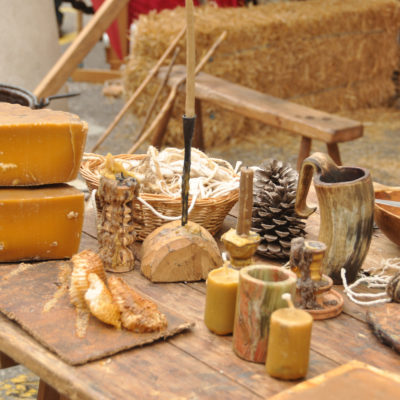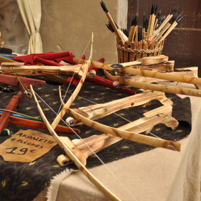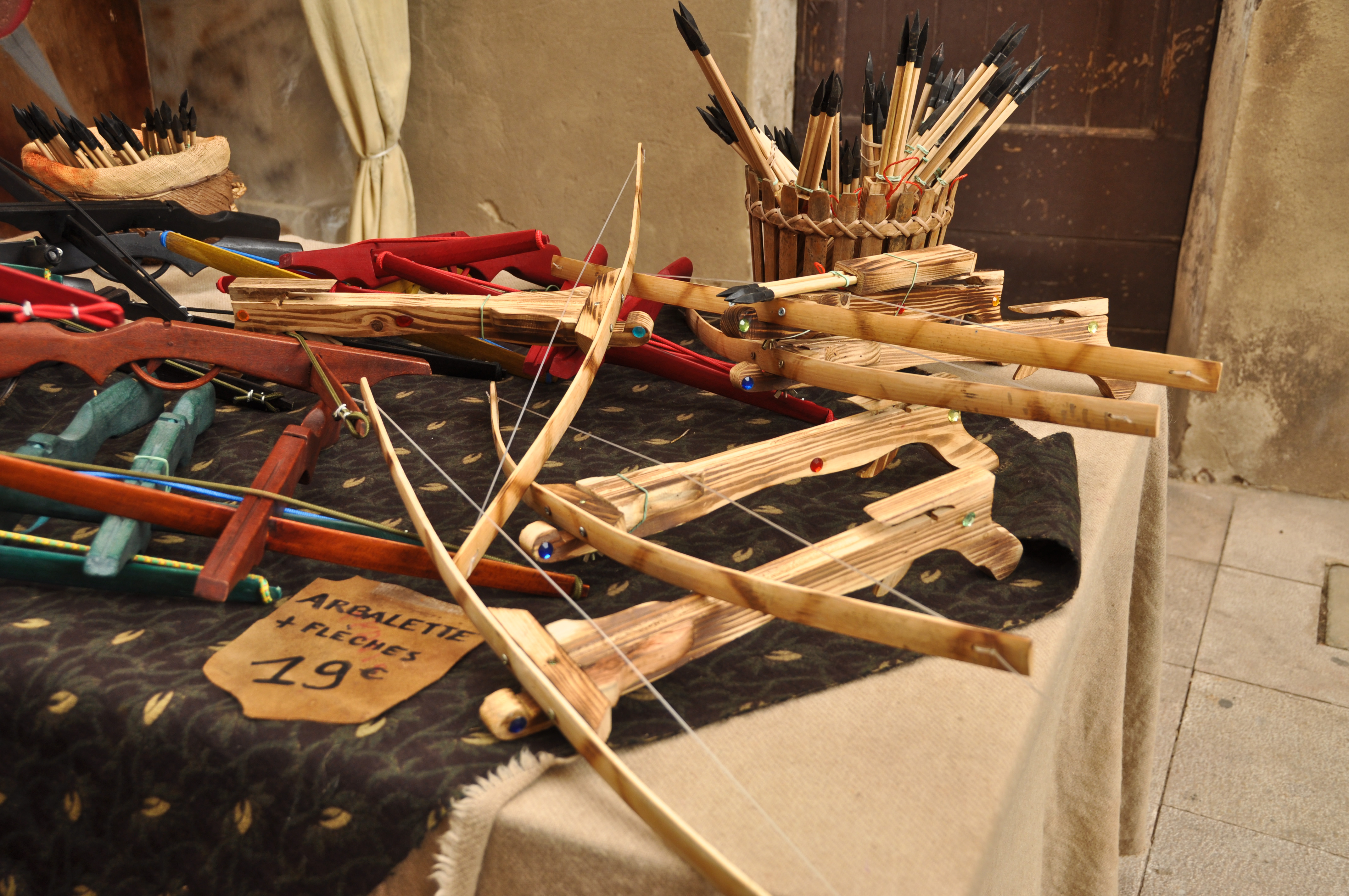 Chaque étal proposaient au public des produits typiques du moyen âge: épées, arcs, arbalètes et boucliers en bois entaillé étaient les jouets les plus cherchés par les enfants, qui les défilaient avec fierté par tout dans la ville, portant des costumes d’époque, ce qui rendait leur jeu plus réel.