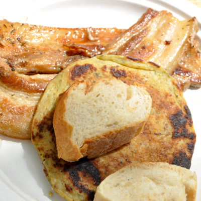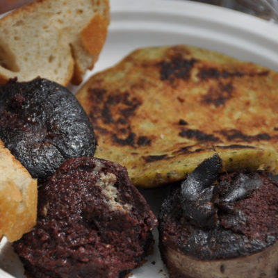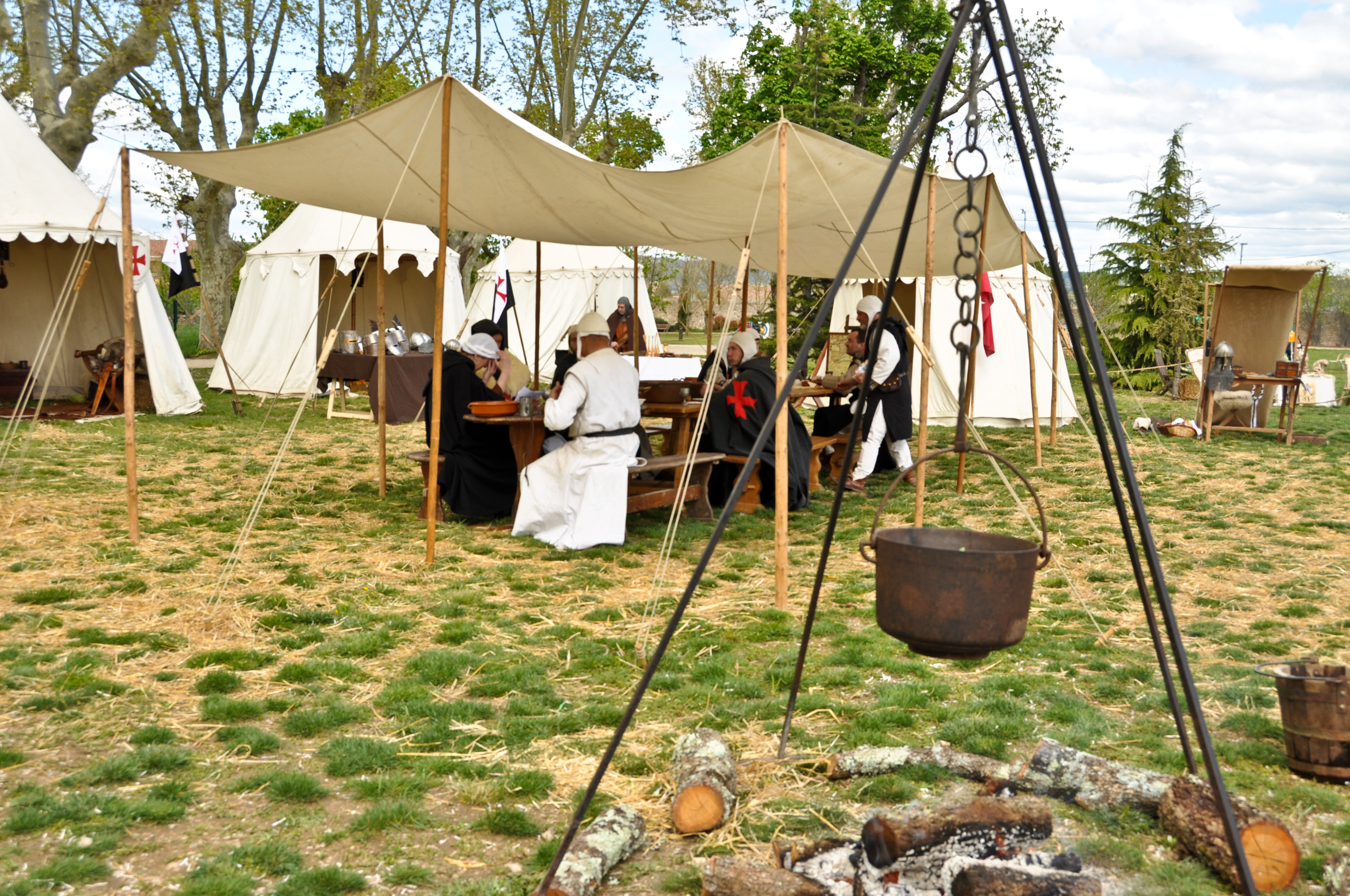 Dans l’enclos face au Couvent Royal il y avait encore d’autres étals et tentes, et sous une d’entre elles on voyait quelques personnes en costume assissent autour d’une table, en train de prendre un repas médiéval et boire du vin. Trois tavernes étaient installés autour de la ville et servaient un repas typiquement médiéval à base de porc accompagné d’une galette et en dessert une délicieuse “tarte du dragon” à la confiture de fraises clôturait ce voyage gastronomique dans le temps.