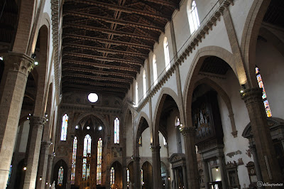 Quando fomos à Florença, em abril de 2014, o batistério estava sendo restaurado, e sua fachada estava coberta por andaimes, o que nos privou de parte do conjunto arquitetônico da praça do duomo. Optei apenas por visitar o interior da igreja, sem as visitas ao batistério e à cúpula. Depois de alguns minutos na fila pra entrar na igreja (entrada gratuita), me encontrei no centro da nave banhada pela luz do dia, a contemplar sua imensidão e a pintura da gigantesca cúpula, a maior do mundo, com 45 metros de diâmetro. O que mais me impressionou no interior da igreja, além da pintura da cúpula, que necessitou 6 anos de trabalhos, é a quantidade de luz natural e o acabamento simples, que contrasta com a riqueza de detalhes da fachada, coberta de placas de mármores de diversas cores, procedentes de várias regiões italianas.