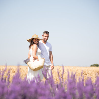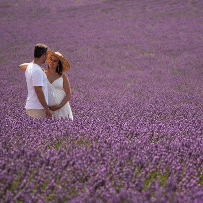 Durante um breve período, a planta que é símbolo da região da Provença proporciona um cenário de beleza exuberante e perfumada, ideal para uma sessão de fotos nos campos de lavanda. O período de floração da lavanda é curto, e os ensaios fotográficos nos campos de lavanda acontecem idealmente no período entre 20 de junho a 10 de julho, no mais tardar até 15 de julho, nos imensos campos do Plateau de Valensole, localizado a 45 minutos (de carro) de Aix-en-Provence. Dependendo da data, também podemos contar com campos sálvia rosa, trigo ou ainda os girassois floridos.