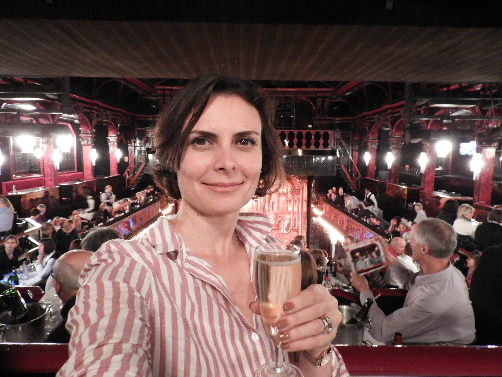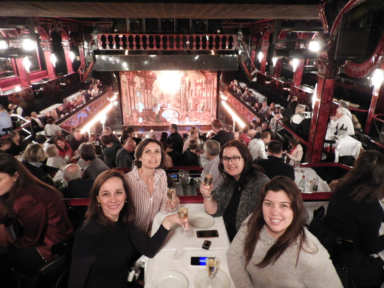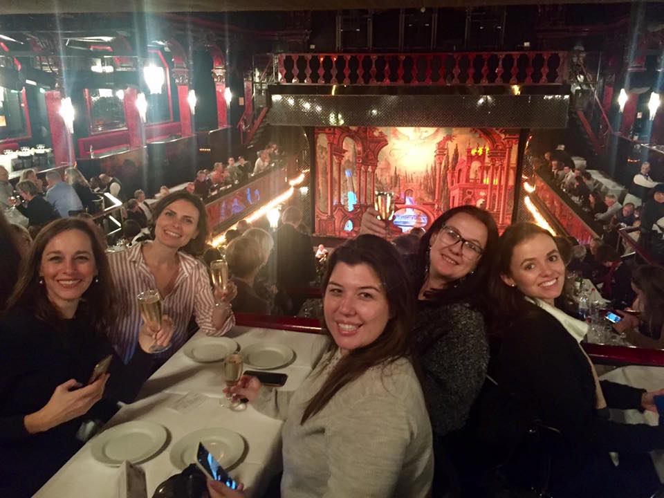 Depois de um dia cheio de palestras no sábado, e terminamos a noite com visita ao cabaré Paradis Latin. Assistimos ao show de cancan no mais antigo cabaré de Paris ainda em funcionamento. Cheguei atrasada e perdi o passeio pelos bastidores do cabaré, mas a apresentação de cancan foi bem interessante.