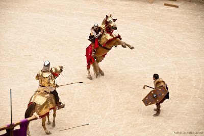 A primeira vez que fomos à Nîmes foi pra assistir à uma encenação dos jogos romanos realizados na época que o império dominava grande parte da Europa, e que o imperador organizava nas arenas de Nîmes quando visitava a cidade e gostamos tanto do primeiro evento que resolvemos repetir a dose. Este ano, além dos duelos de gladiadores, os jogos são animados por demonstrações de combates entre as tropas romas e gaulesas, além de uma encenação com tema escolhido pelo imperado, e este ano o tema do “circo” foi a batalha de Troia. O espetáculo é narrado por Eric Dars, que é professor de história na Université de Nîmes, e portanto tem o cuidado de situar os eventos e apresentar os personagens envolvidos nas cenas.