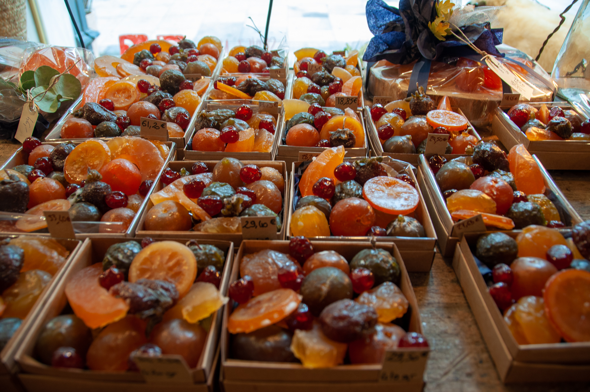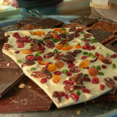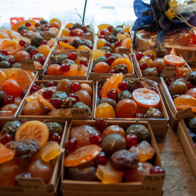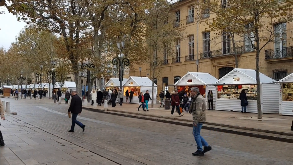 Os chalés em madeira branca instalados ao longo do Cours Mirabeau alegram a cidade e trazem diversas opções de produtos típicos da época, como os deliciosos pain d’épice (pães de mel com especiarias), chocolates ou nougats. Além de produtos locais, as delícias da Alsácia também marcam presença com um chalé inteiramente dedicado os vinhos quentes e pretzels.