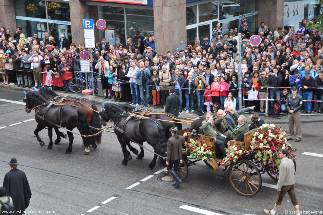 A Oktoberfest acontece na capital da Bavária desde 1810, quando aconteceu o casamento do então príncipe Ludwig com a princesa Theresa e a celebração com a população foi tão grande que, festeiros como os alemães são, a festa se repete anualmente (ou quase, tendo sido adiada durante o período de guerra) e não se resume simplesmente à festa da cerveja, sendo uma grande festa que marca o fim do verão, celebra as colheitas e reúne um imenso salão de agronegócios, com direito à venda de animais (vimos cada touro de tamanho impressionante) e de máquinas agrícolas, igualmente gigantescas (lembrando que tudo na Alemanha tem dimensões exageradas, passando pelo tamanho da estátua que representa a região e incluindo o tamanho das palavras, como Theresienwiese, espécie de parque onde tudo isso acontece). E por que Oktoberfest se ela começa em setembro? Porque o casamento aconteceu em outubro, e como a festa tem duração de três semanas o consenso (e o bom senso também) foi que a data de início seria no fim de setembro, quando o clima ainda é mais ameno (média de 15°), e o encerramento da festa acontece em outubro.