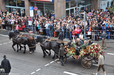 O desfile durou cerca de uma hora e contou com a participação das várias cidades da região da Bavária demonstrando aspectos culturais, sendo que na minha opinião, o pessoal com os chicotes foram a sensação do desfile e arrancaram aplausos animados de quem parou pra assistir. A organização para o desfile começou minutos antes: a polícia balizou as ruas do percurso que terminava na Theresienwiese, e assim que o desfile terminou, a multidão seguiu tranquilamente rumo à festa, que tem início oficial quando o prefeito abre o primeiro galão de cerveja, serve sua caneca e brinda a todos. E nós seguimos pra Hofbräuhaus do centro e acertamos na escolha, porque conseguimos uma mesa sem dificuldade, feito que foi um tanto mais complicado no dia seguinte, quando fomos pra Theresienwiese debaixo de chuva.