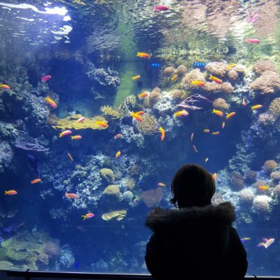 Vic ficou hipnotizado pelos peixes, cavalos-marinhos, medusas, tubarões e anêmonas que viu, e tivemos a oportunidade de mostrar espécies ameaças e explicar os motivos pelos quais é importante pensar na preservação dos mares e cuidar muito bem para que o lixo não chegue até eles. Um aquário formado apenas por lixo humano pode ser visto em meio aos demais aquários e o objetivo é sensibilizar o público com relação à preservação da vida marinha, extremamente ameaçada por conta da pesca predatória em larga escala e à utilização excessiva de plásticos, assim como à falta de cuidados ao descartar lixo.