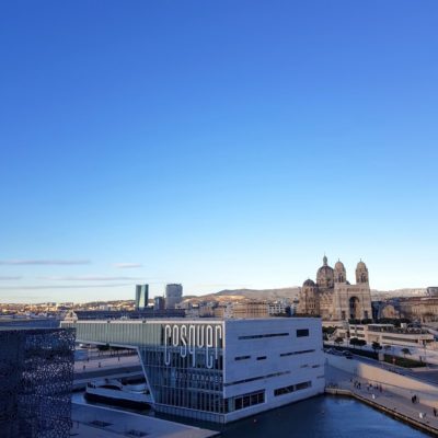 A gruta Cosquer ocupa o edifício ao lado, ambos construídos no mar, elemento essencial na história de ambos. Cosquer foi o mergulhador que descobriu a gruta em 1991 nas calanques durante um de seus vários mergulhos. Cauteloso, foram 5 tentativas até que ele conseguisse chegar ao espelho d’água e de fato se deparar com a beleza da gruta. Mas o melhor estava por vir: quando ele lançou sua lanterna para explorar a galeria onde estava e viu pinturas rupestres foi que se deu conta da dimensão de sua descoberta.