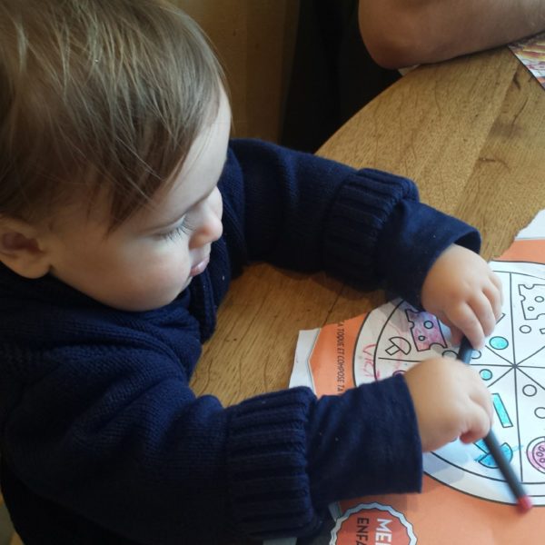 Em alguns estabelecimentos há algum tipo de distração pras crianças : o jogo americano com desenho pra colorir e brincadeiras, e uma opção legal pra ajudar a passar o tempo é ter sempre um caderno e lápis de colorir à tiracolo, boas brincadeiras e atividades podem ajudar as crianças a se ocupar enquanto esperam os pratos chegarem.