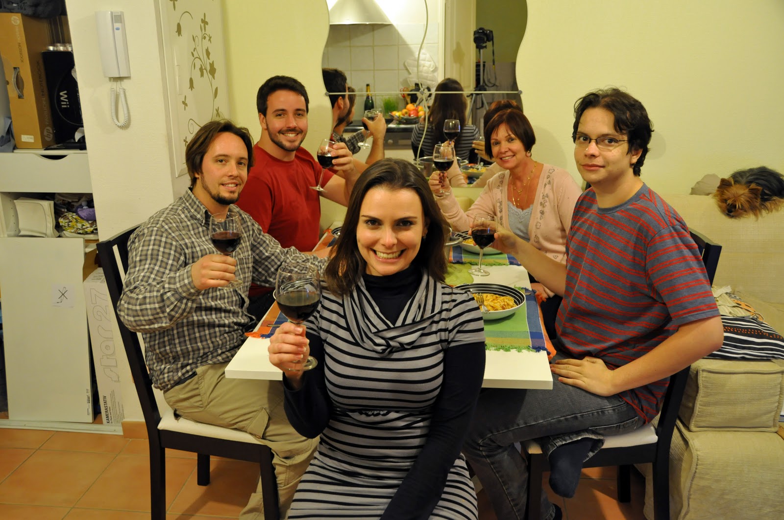 A família chegou uma semana antes do Natal; vieram minha mãe, meu irmão e o irmão do Bernardo e chegaram no fim de tarde de um sábado, depois de uma viagem longa e cansativa, mas sem turbulências. Sogro e sogra não puderam vir dessa vez, mas não tardarão a nos visitar, e também vão ser recebidos por Luna Maria e com um jantarzinho bem apetitoso pra descansar da viagem. No caso da família, um fondue de queijo os aguardava, depois de um banho bem quente pra relaxar o corpo das dimensões reduzidas da cabine do avião.