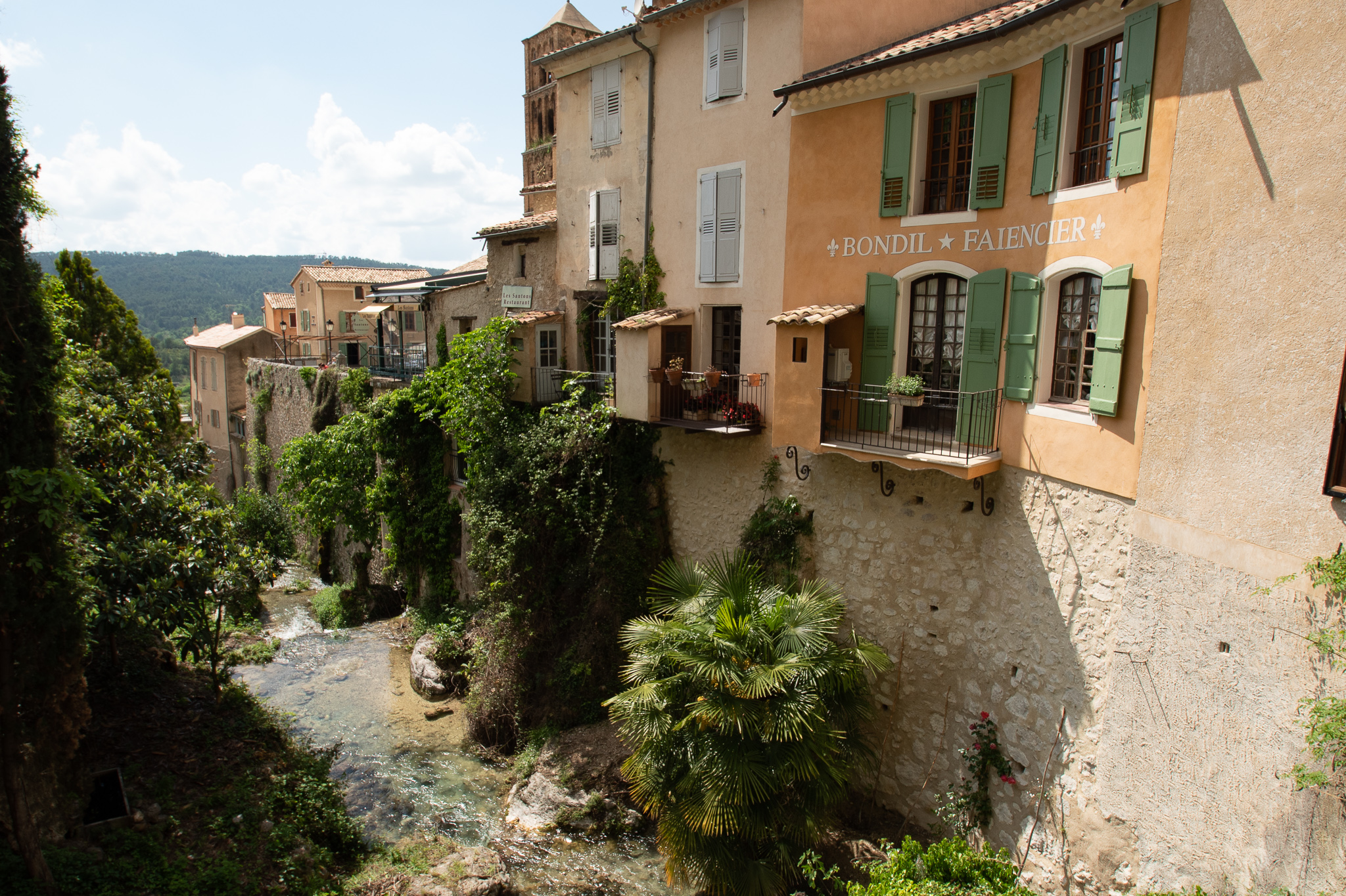 Instalada entre campos de lavanda e as Gorges du Verdon, os desfiladeiros do rio Verdon que tem 175km de extensão e que alimenta o belo Lago de Sainte-Croix, fica a cidadezinha de Moustiers-Sainte-Marie, listada como um dos mais belos vilarejos da França e é conhecida pela fabricação de faiança, um tipo de cerâmica branca. A primeira impressão que temos logo que avistamos a cidade, ainda da estrada que nos leva até ela, é que trata-se de um vilarejo esculpido das pedras que o cercam. E foi justamente desta forma que teve início a ocupação da região, que remonta há 30 mil anos, sendo que o ocupação do atual vilarejo teve início no século V, quando monges de Lérins (ilhas próximas à Cannes) se instalaram nas grutas, instalando ali o monastério, ou “moustier” como era dito na idade média.