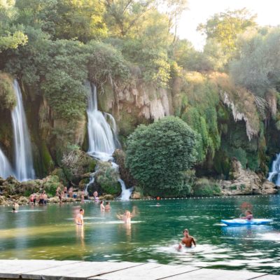 Mostar foi nossa primeira parada, onde ficamos por dois dias, sendo um dedicado ao passeio até as cachoeiras Kravica. O trajeto de Dubrovnik até lá foi surpreendente: paisagens naturais muito bonitas, pontuadas aqui e ali por algumas ruínas no caminho. De lá passamos outros dois em Sarajevo, mas eu mudaria pra três, pelo menos. A cidade tem muito pra se visitar, e fiquei com muita vontade de voltar. O itinerário de Mostar à Sarajevo nos deixou boquiabertos: um rio de águas turquesa nos acompanhou durante boa parte do trajeto, e paramos na região de Jablanica para almoçar e apreciar a vista.