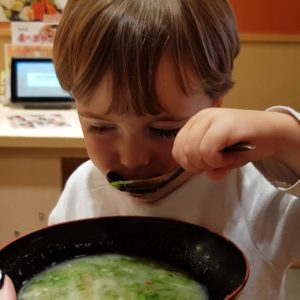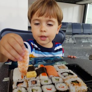 Uma pergunta que me foi feita com frequência por amigos durante e depois da nossa viagem foi relativa à alimentação no Japão, principalmente com relação à alimentação do Vic. Não tivemos nenhuma dificuldade, pois comida japonesa é sua favorita! Ele é fã de sushis e o arroz japonês é garantia de sucesso inclusive quando ele fica doente e o apetite desaperece! Mas nem só de sushi é feita a culinária japonesa, extremamente saborosa e variada em seus ingredientes e modos de preparo.