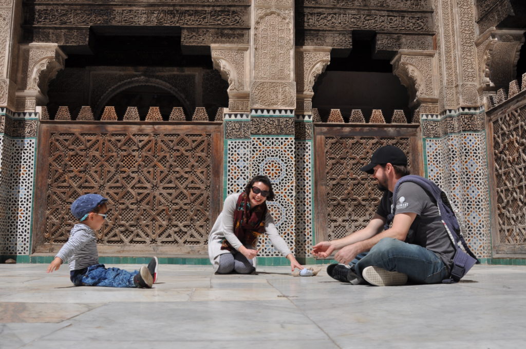 Ambos os riads ficam bem proximos das atrações que visitamos, e isso facilitou muito a logistica das sonecas, pois nem carrinho levamos pro Vic – e não vimos tantos assim, as marroquinas caregam os bebês em echarpes nas costas, e Vic foi carregado grande parte do tempo quando ficava cansado, nas costas do pai no canguru.