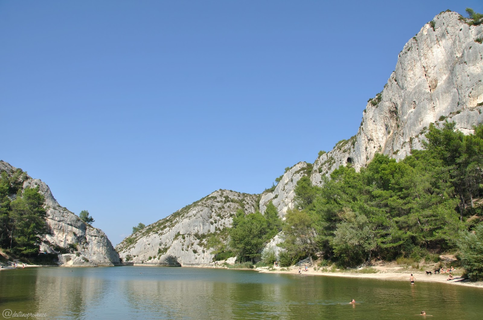 Seguimos dali pro lugar do nosso compromisso gastronômico: o lago des Peiroou, que na verdade é uma barragem construída onde outrora os romanos haviam edificado a barragem deles, que alimentava o sítio de Glanum. O lago fica nos Alpilles, nome dado à montanha que se estende ao longo de 25km passando também em Les Baux de Provence, que fica a 10km de Saint-Rémy. Apesar do calor, nadar no lago é proibido, nos contentamos em saborear nosso piquenique e observar os transgressores – sim, havia várias pessoas nadando, não devem ter lido as orientações na placa.