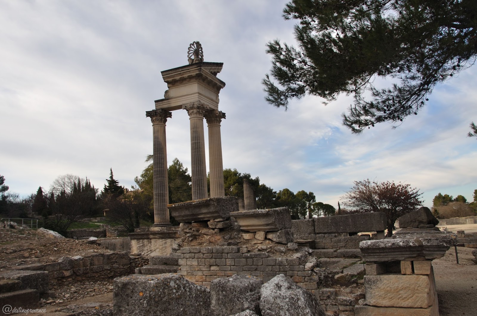 ruínas romanas de Glanum, sítio arqueológico que faz valer a ida à Saint-Rémy mesmo no inverno.