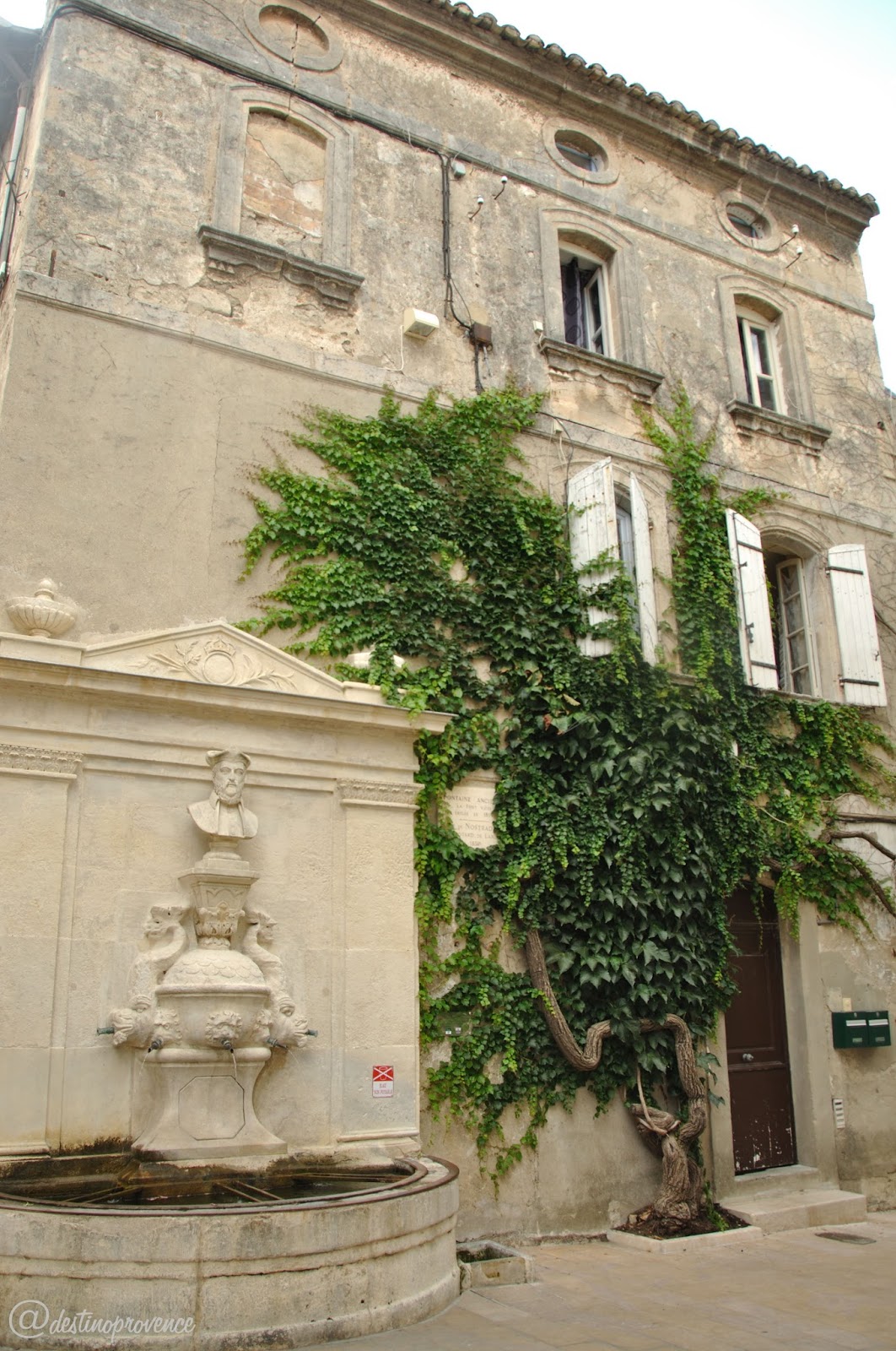 Fonte em homenagem à Nostradamus e lojinha de souvenirs