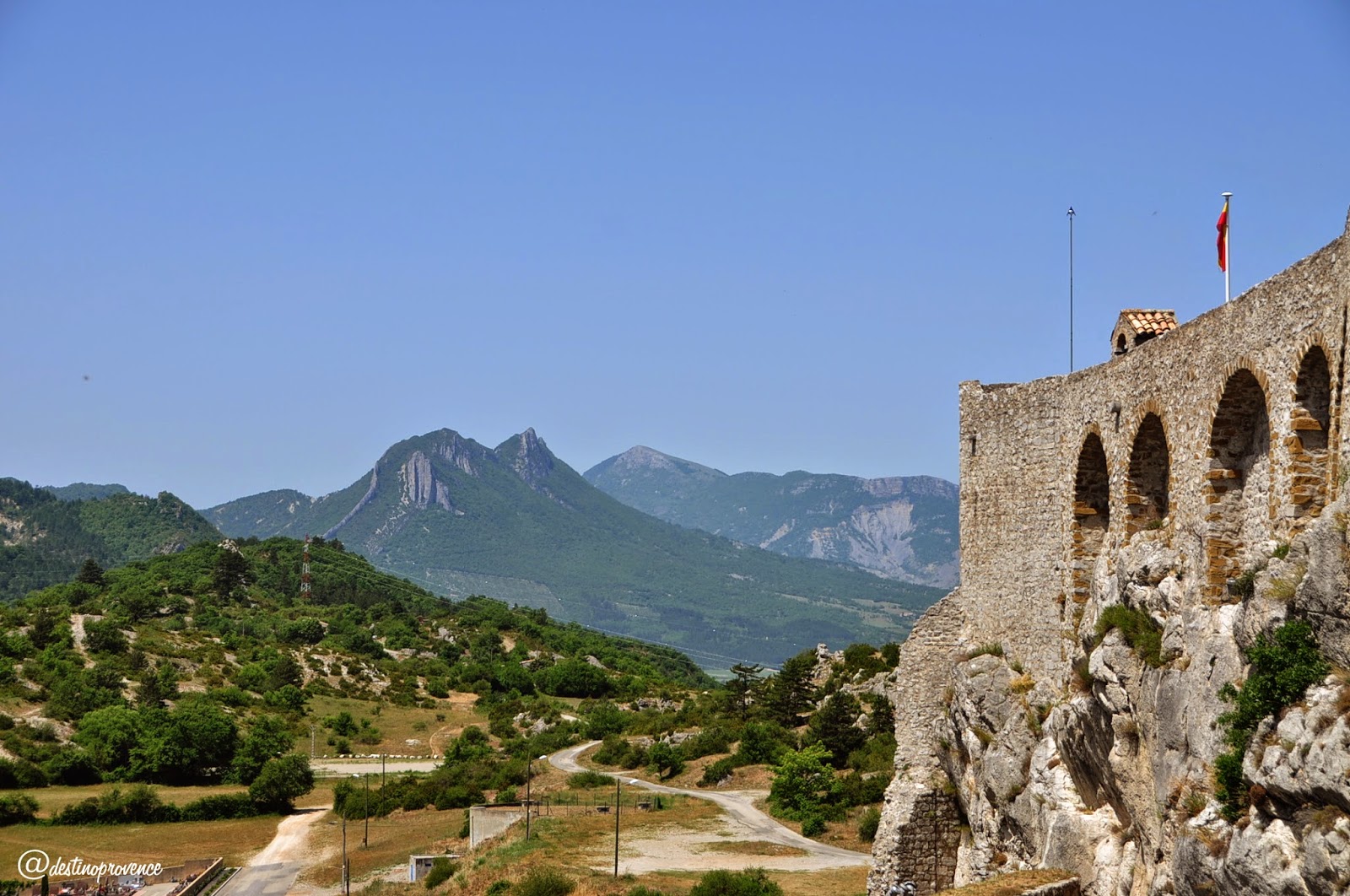 Os vestígios de ocupação humana indicam que o local já tinha vocação de proteção no século I antes de Cristo, mas a construção que vemos atualmente data à partir do século XIII. Construído como ponto de proteção de fronteira da Provença contra as invasões da província vizinha, Dauphiné, cuja antiga capital era Grenoble. Ambas as regiões não existem mais administrativamente, mas os povos que habitam os departamentos (atual divisão territorial que em breve vai sofrer modificações) continuam sendo conhecidos como “dauphins”, e tentaram repetidas vezes tomar o território dos vizinhos provençais.