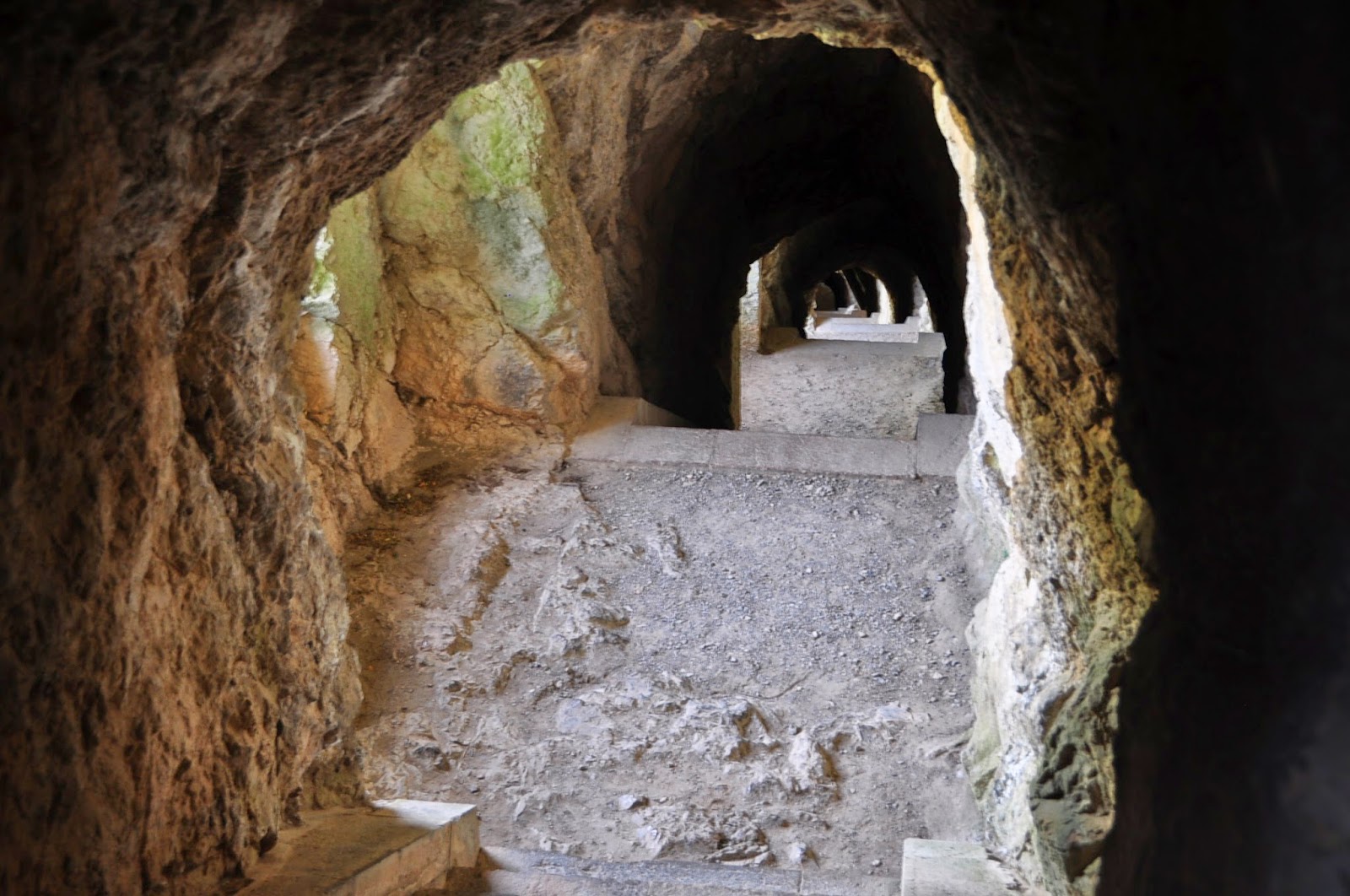 O que mais surpreendeu na visita, além da construção em si, é a vista panorâmica espetacular da região, inclusive pros Alpes. Como o vento que soprava vinha do mar, a visibilidade da cadeia alpina não era a melhor, mas ainda pudemos ver pontos da montanha cobertos de neve, enquanto o suor molhava nossos rostos sob um calor de 28°. Pra refresca, só mesmo explorando o interior da cidadela, e nessa exploração acabamos descendo os 258 degraus da escadaria cavada na pedra, que ligava a porta mais baixa ao interior da fortificação. E quem acha que tem saída, engana-se: no final da escadaria, temos que voltar os mesmo 258 degraus. Pra nossa sorte, ali dentro estava fresquinho e a vista das janelas era de tirar o fôlego – mais que os degraus acima!