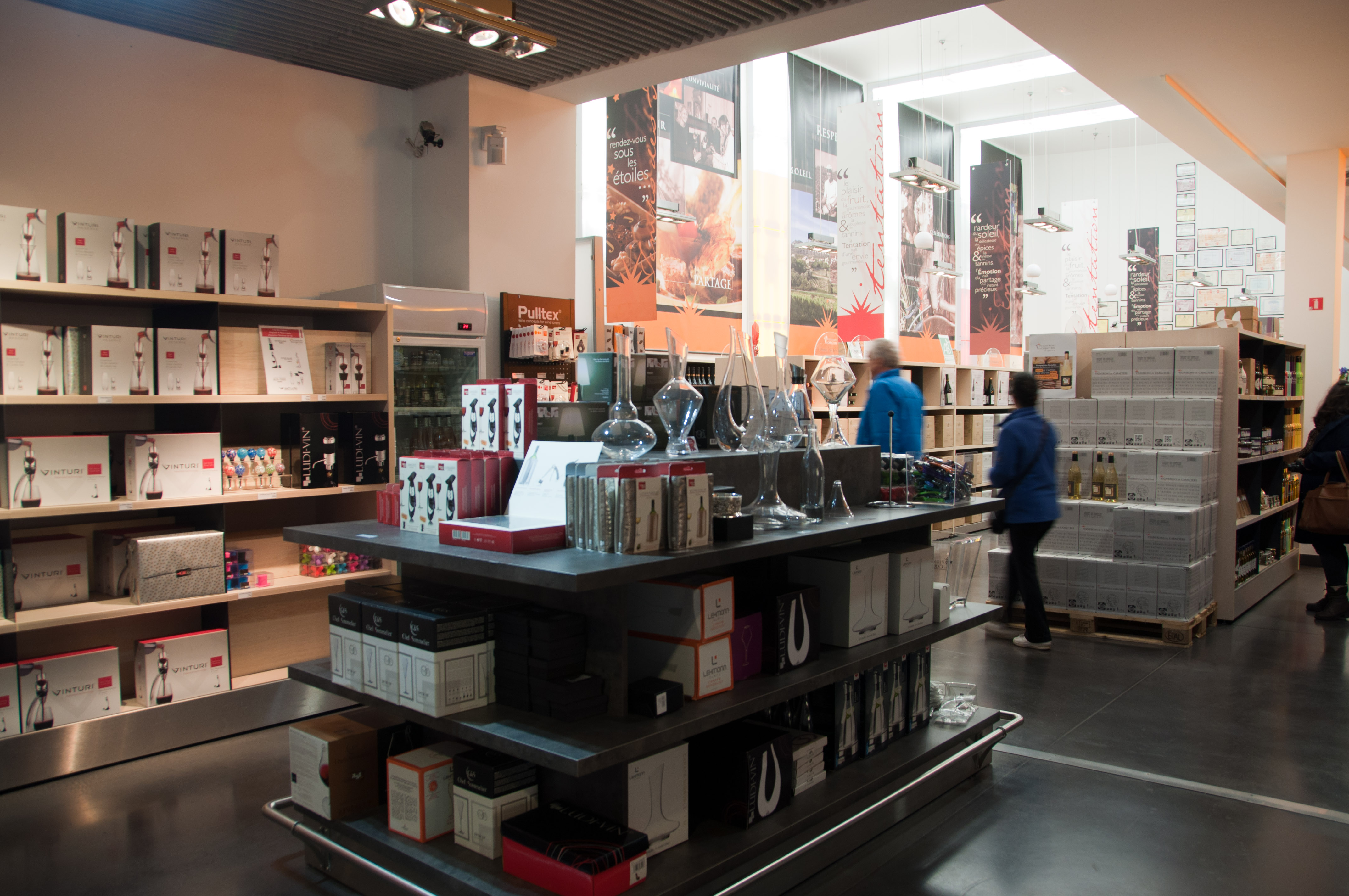 Nosso atelier aconteceu no espaço Vignerons de Caractère, uma cave cooperativa criada em 1956 que reúne 80 famílias de produtores locais distribuídos em 800 hectares de terras cultivadas. Localizada na entrada da cidade de Vaqueyras, o espaço de vendas reúne os rótulos da região do Mont Ventoux, como Gigondas e Vacqueyras. Outros produtos típicos da região, como mel, patês e azeites, também são vendidos na boutique, que conta também com grande opção de acessórios para amantes do vinho. Além dos produtos no espaço de vendas e no site há também a proposta de experiências com foco no turismos enogastronômico, como passeios e degustações. O atelier que fomos convidadas à participar* é uma das atividades organizadas pela cave.