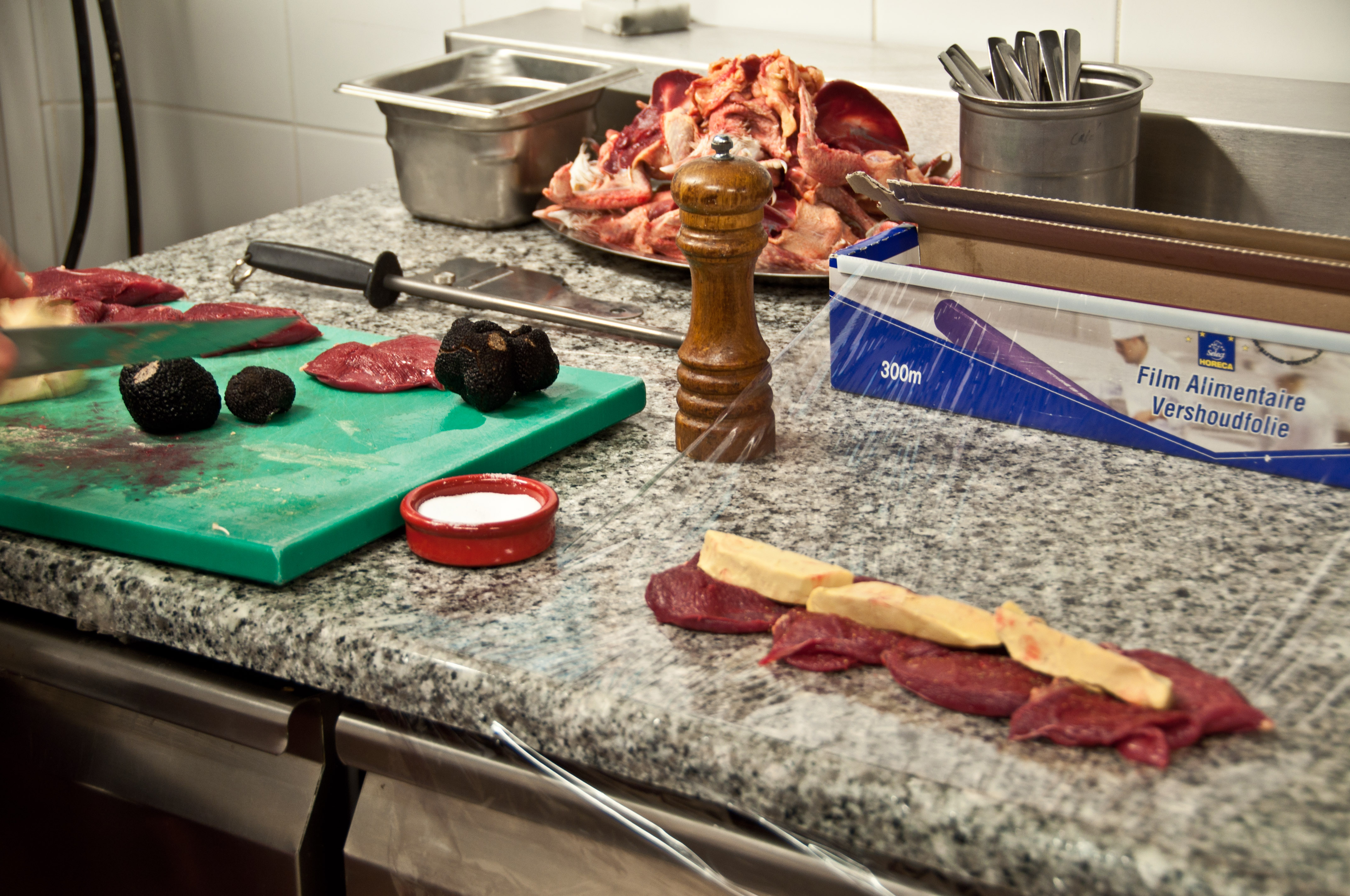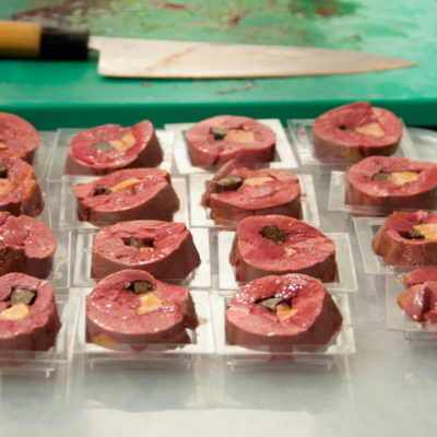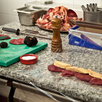Apesar de alguns ingredientes pouco habituais, como filé de pombo e mesmo as trufas, o ponto alto do experiência foi aprender técnicas. O filé de pombo – que eu experimentei pela primeira vez – foi preparado em forma de suprême. A chef nos mostrou como transformar um filé de ave, ingrediente simples, em algo elaborado. Com recheio saboroso, no caso a trufa, e usando filme alimentar para cozimento. Adorei aprender a técnica de enrolar o filé no filme para cozinhar, técnicas diferentes variam as refeições cotidianas.