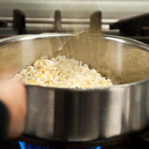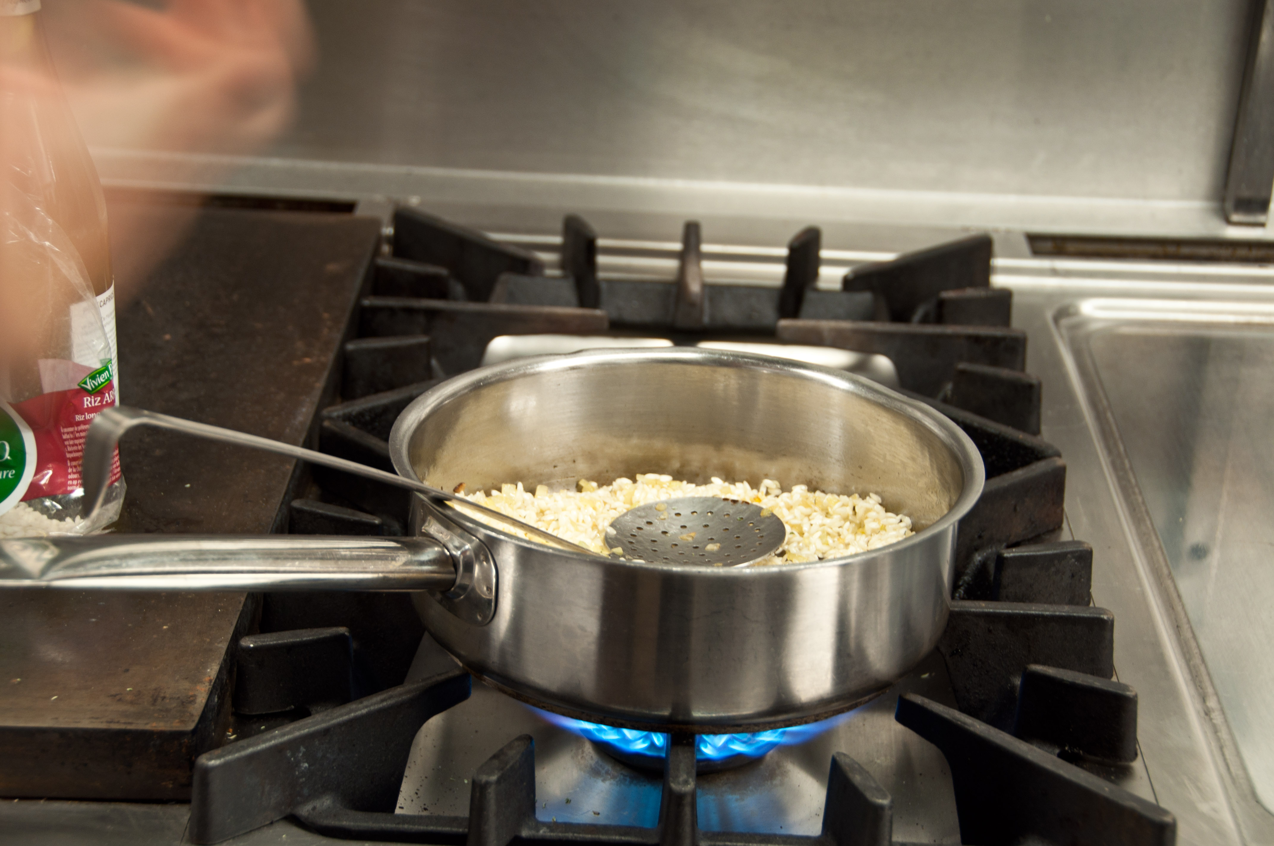 O passo a passo do risotto é bem minucioso: cobrir o arroz, após ser refogado em cebola, com vinho branco. Quando o vinho evapora, cobrir com caldo de galinha até evaporar, e repetir a operação com o caldo 8 vezes no total. Ao final, acrescentar creme de leite fresco e parmesão ralado, sal e pimenta do reino a gosto, e um pouco de manteiga para brilho. A trufa é servida por cima, numa fatia fina, porém generosa. O prato foi acompanhado por um vinho branco Cru des Côtes du Rhône, Vacqueyras Seigneur de Fontimple Blanc.