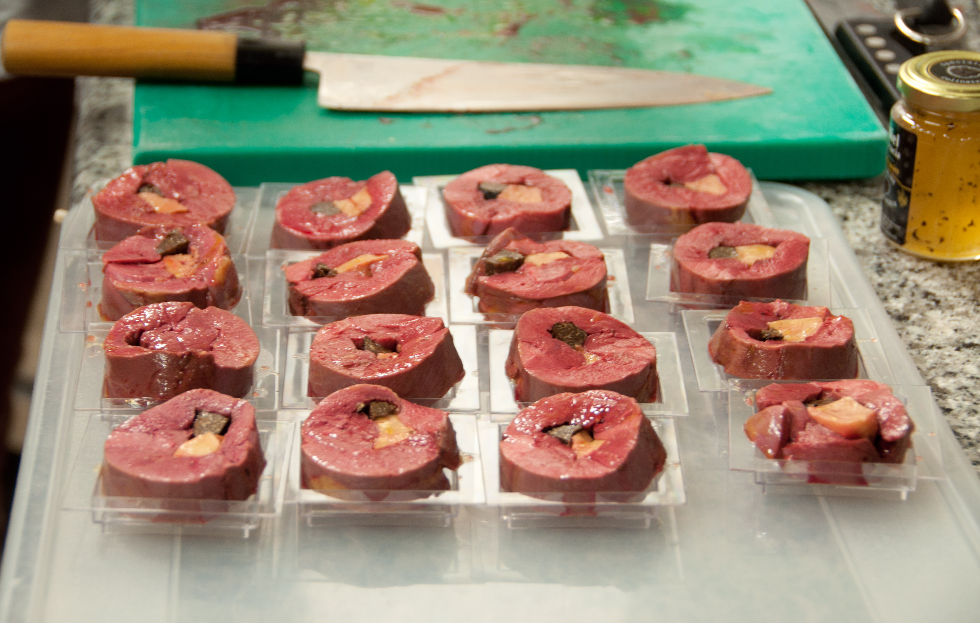 Talvez eu nunca terei a destreza da chef para separar os filés, preferindo deixar o trabalho pro açougueiro. Mas adorei aprender as técnicas usadas para transformar o filé simples em um supremo recheado com foie gras e trufa. Imediatamente pensei em outros recheios que poderia adaptar ao meu dia a dia. Um queijo bem saboroso, ou alguns legumes, até mesmo um creme de milho. Para acompanhar esta descoberta culinária, meu vinho tinto preferido da região do Mont Ventoux, Gigondas Pas de Montmirail (trouxe duas garrafas pra casa!)