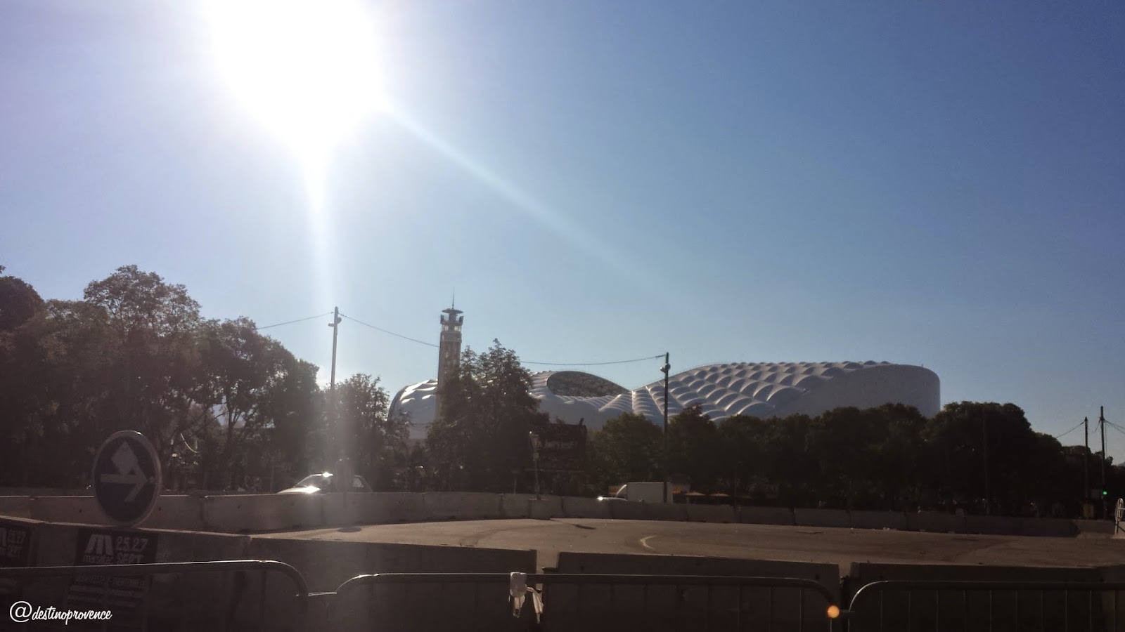 A avenida Prado tem formato em L, ou seja, ao chegar no Rond Point du Prado (rotatória), ela continua em direção ao mar, e isso porque o projeto de urbanização da cidade previa a extensão da Rue de Rome, da qual a avenida Prado é prolongação, até o mar. Assim, a avenida delimitava o fim da cidade, mas depois foi extendida no sentido sul dando origem ao Boulevard Michelet, onde fica a entrada do estádio Vélodrome, que pode ser parcialmente visto na foto abaixo. Outra atração que está na minha listinha de visitas em Marselha é o imóvel Le Corbusier, ou Cité Radieuse, por refletir a luz do sol no momento do crepúsculo. No final da Prado, logo na beira-mar, tem uma réplica do David de Michelangelo.