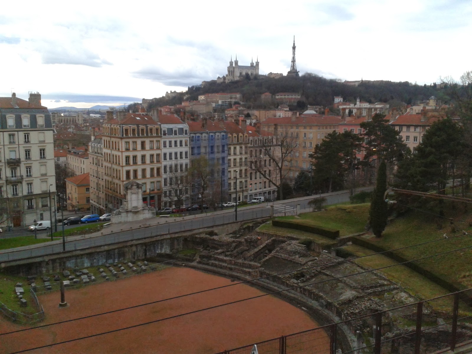 | Notre Dame de Fourvière e ruínas do anfiteatro des Trois Gaules no caminho |